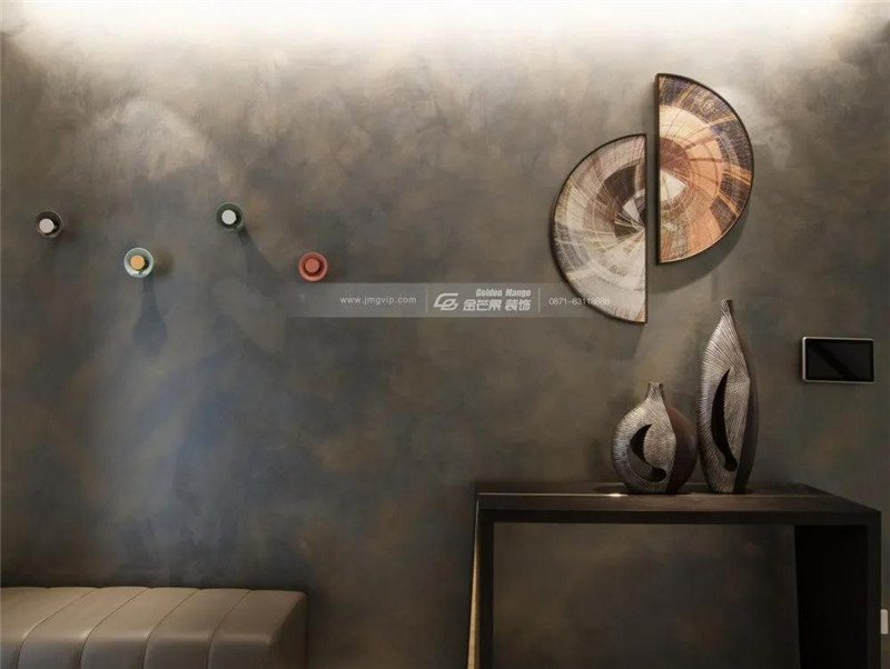 一入戶即是眼前一亮的感覺,一面是玄關柜,可以隨手放下生活的瑣碎,一面是藝術品味的展現。仿原始建材的設計格調滿滿,讓人忍不住想走進里面看看什么樣了。