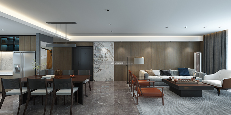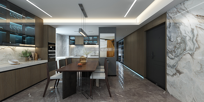 簡潔的線條突出物體本身的品質(zhì)感,簡約、和諧的顏色搭配優(yōu)雅又舒適。大理石材、玻璃、木飾面的運(yùn)用,讓整個(gè)空間層次感豐富,不會(huì)單調(diào)。
