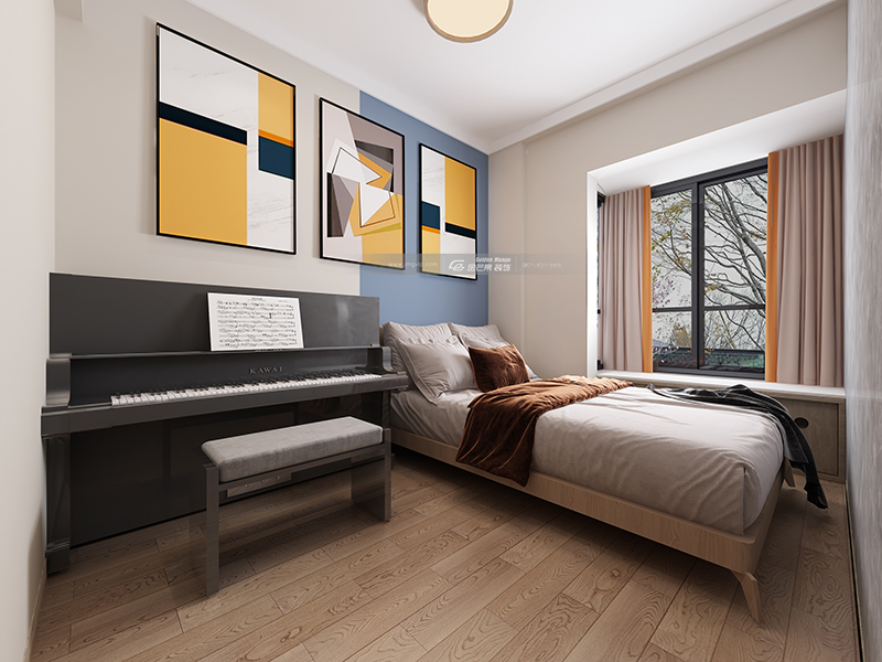 用黃色的裝飾畫增加空間的活力,活潑的空間氛圍讓空間變得溫暖靈動起來。整體暖暖的色調有個性又溫馨舒適。