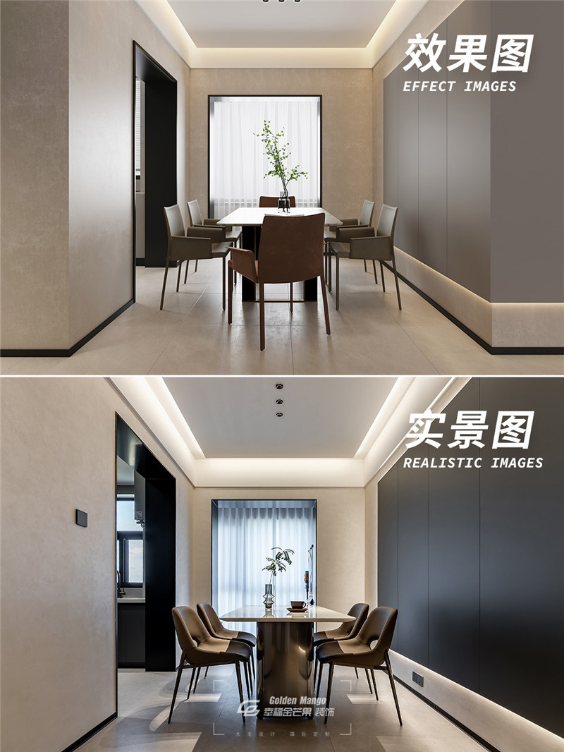 移至餐廳區域,竟一時分不清哪個是效果圖、哪個是實景圖,這還原度簡直沒話說。背后是看得見的幸福金芒果“還原力”,這是幸福金芒果品質的標準答案,一直以來從未改變。業主眉眼間的那一抹弧度,就是幸福金芒果深耕的幸福。