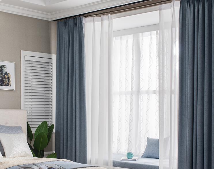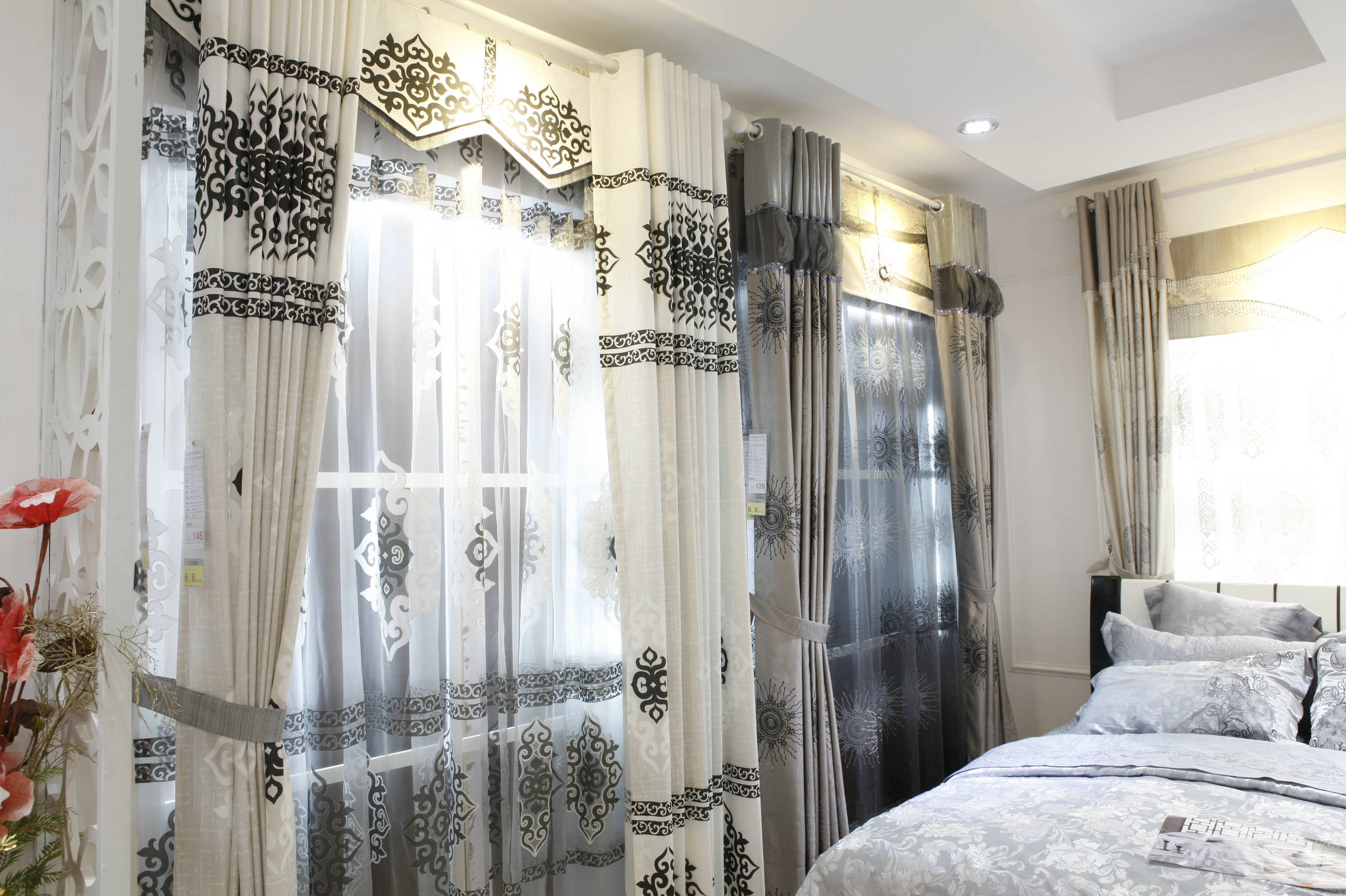 臥室:宜用布藝簾,加遮光布與窗紗。款式以簡(jiǎn)潔為主,較小的窗戶可選擇成品簾。